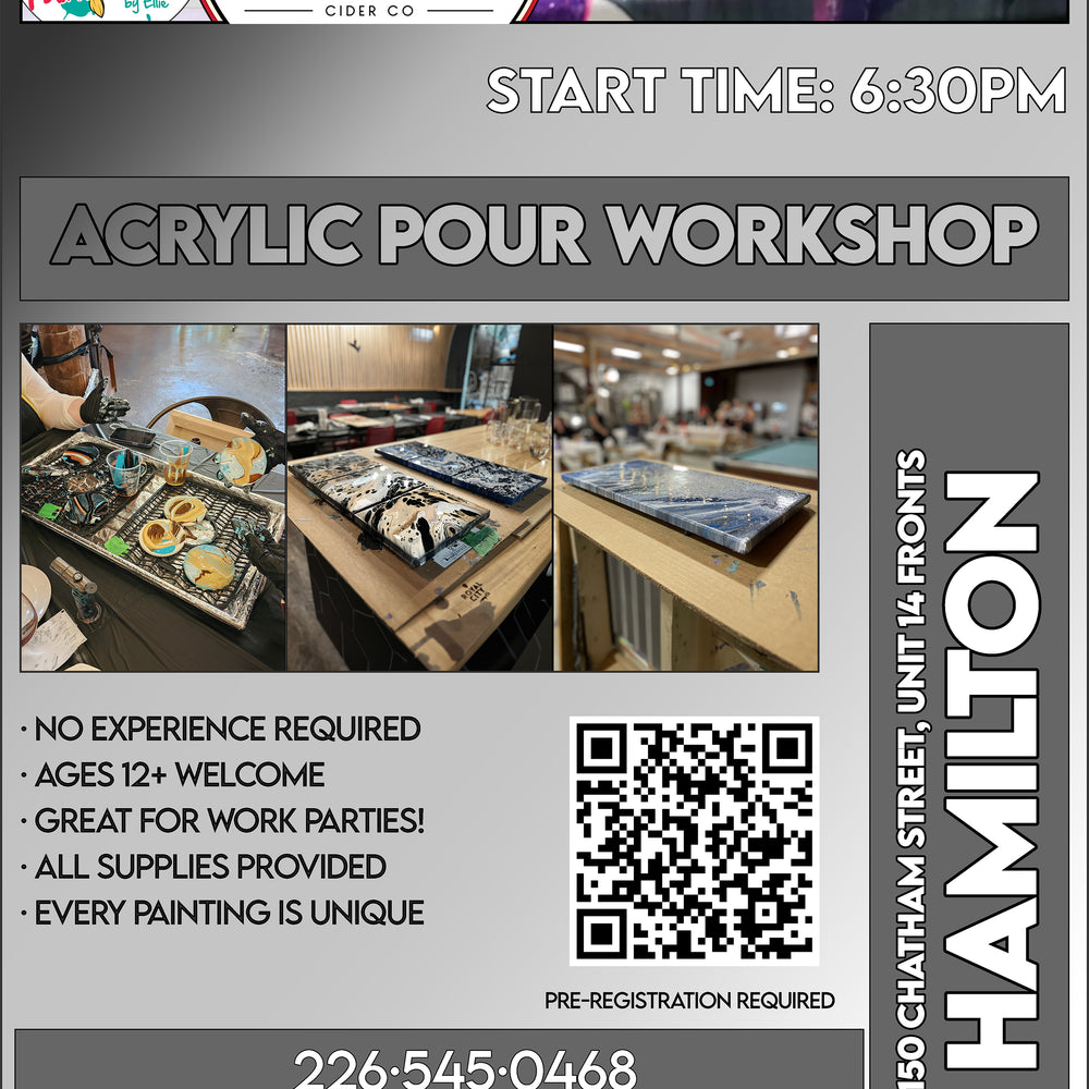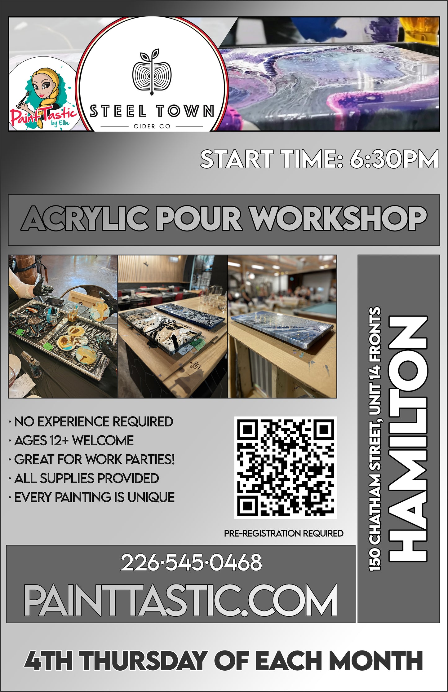 - If you are running late to one of our workshops, there's no need to worry! Unlike regular paint nights, where everyone paints at the same time, our Pour Paint Workshops offer a more flexible experience. Regardless of your arrival time, you will still receive the same quality of service.
