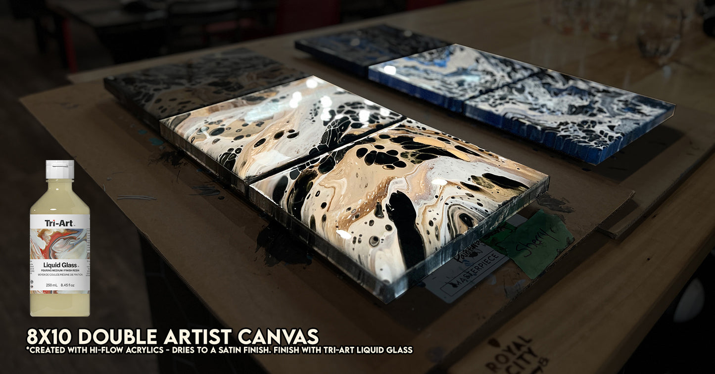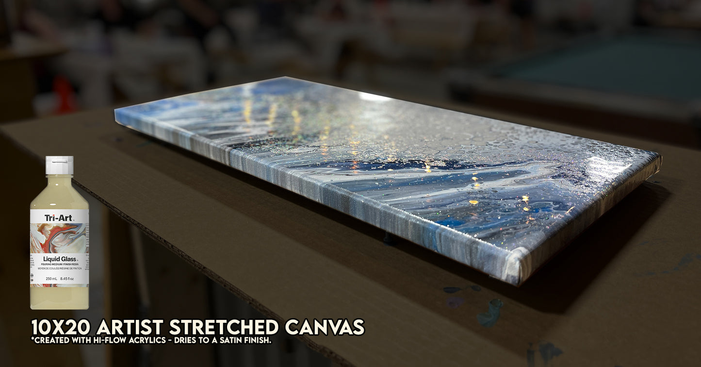 Our artist-grade 10Γ20 canvas offers a smooth gessoed surface for a satin finish. A solid pick for first-time pourers!