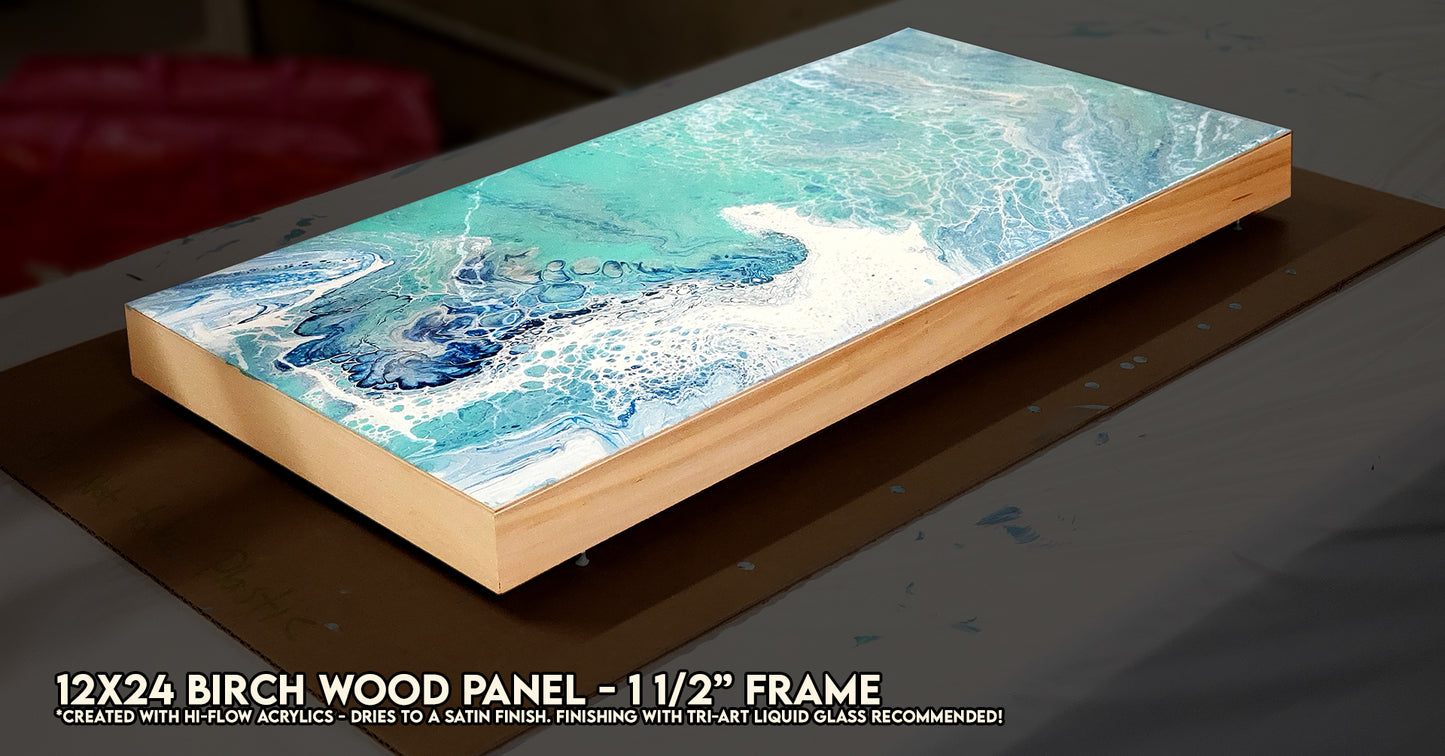 Our large 12"x24" Apollon-Gotrick Birch Wood Panels are built right here in Ontario, Quebec! Expertly crafted with a 3mm Baltic birch surface and nestled in a robust 1 5/8-inch galerie wood frame, this panel exudes a sense of depth and professionalism.