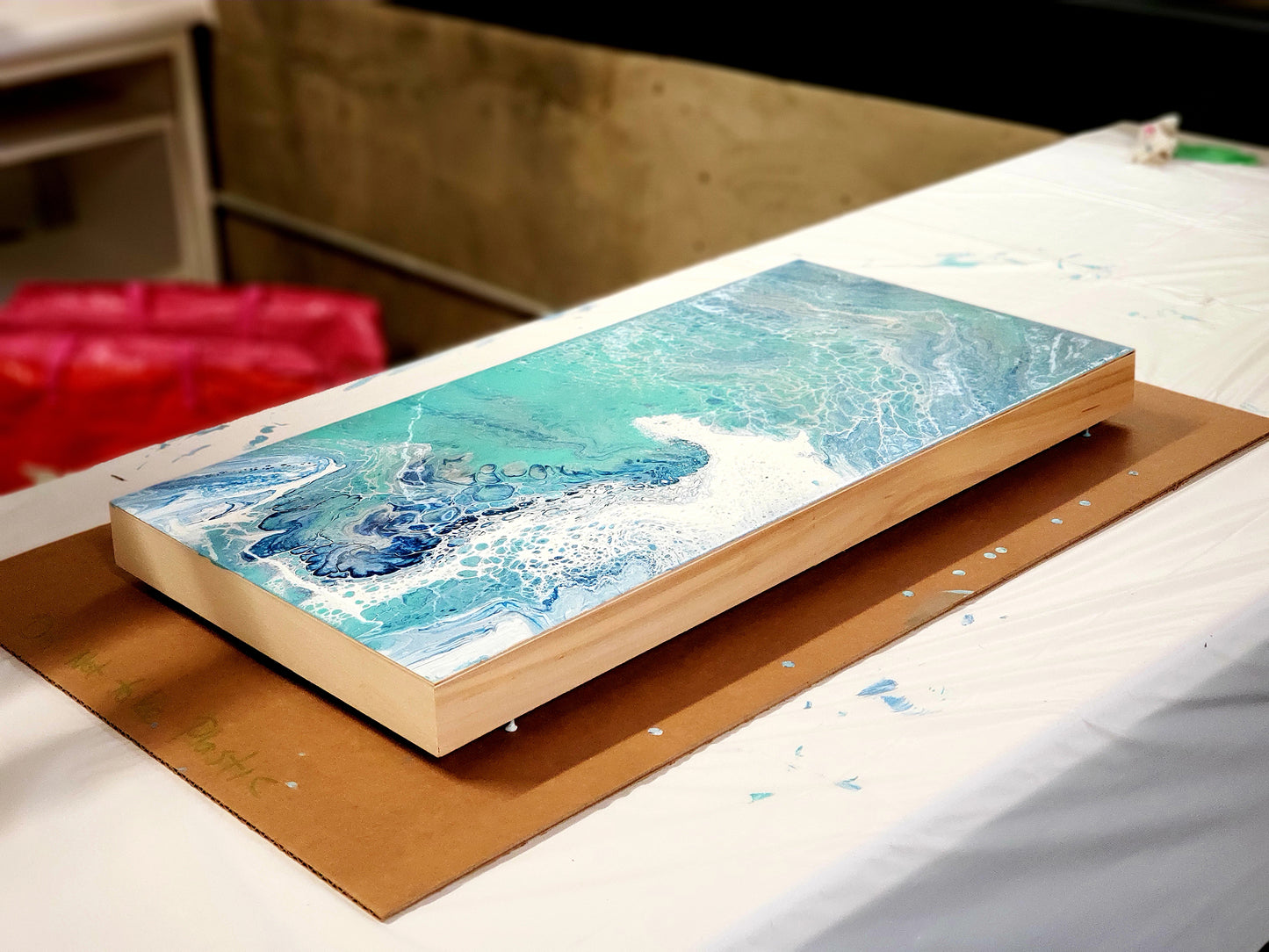 With the TRIPLE CANVAS POUR, align three canvases and pour across them at once to create a continuous design that looks striking when hung together.