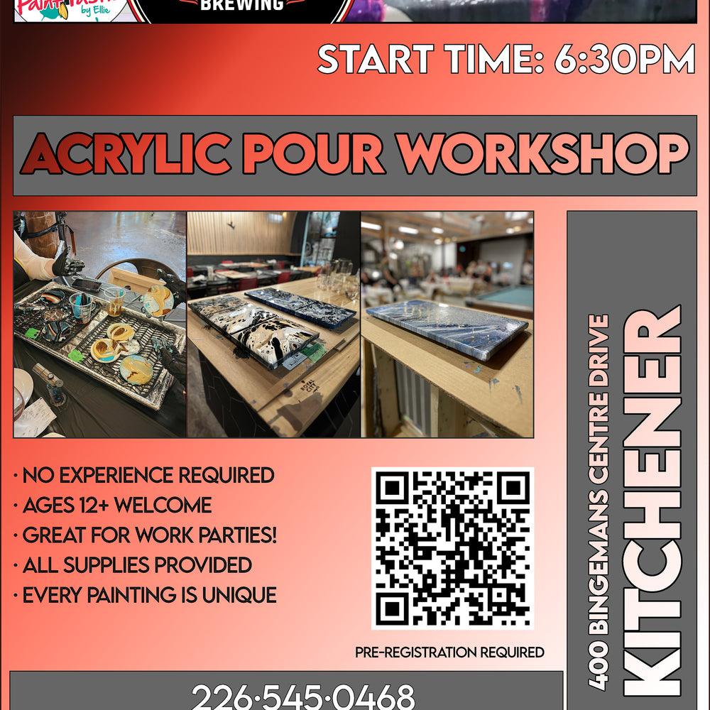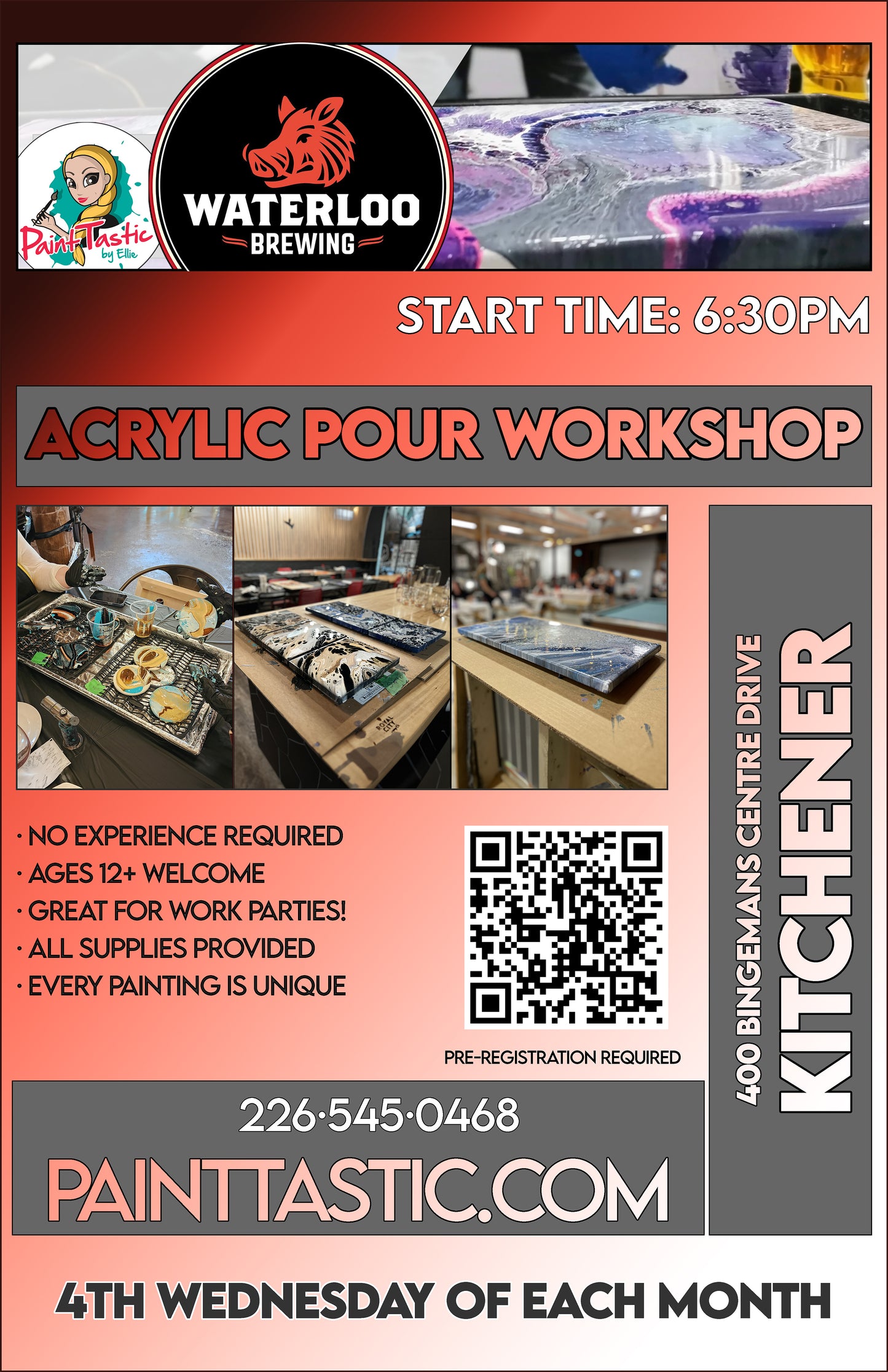 - If you are running late to one of our workshops, there's no need to worry! Unlike regular paint nights, where everyone paints at the same time, our Pour Paint Workshops offer a more flexible experience. Regardless of your arrival time, you will still receive the same quality of service.